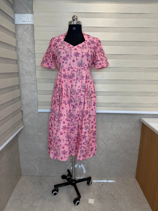 Pink Lotus Printed Hakoba Non Feeding Maxi