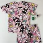 Baby Pink Kitty and Doll’s Printed T-Shirts and Shorts Coords