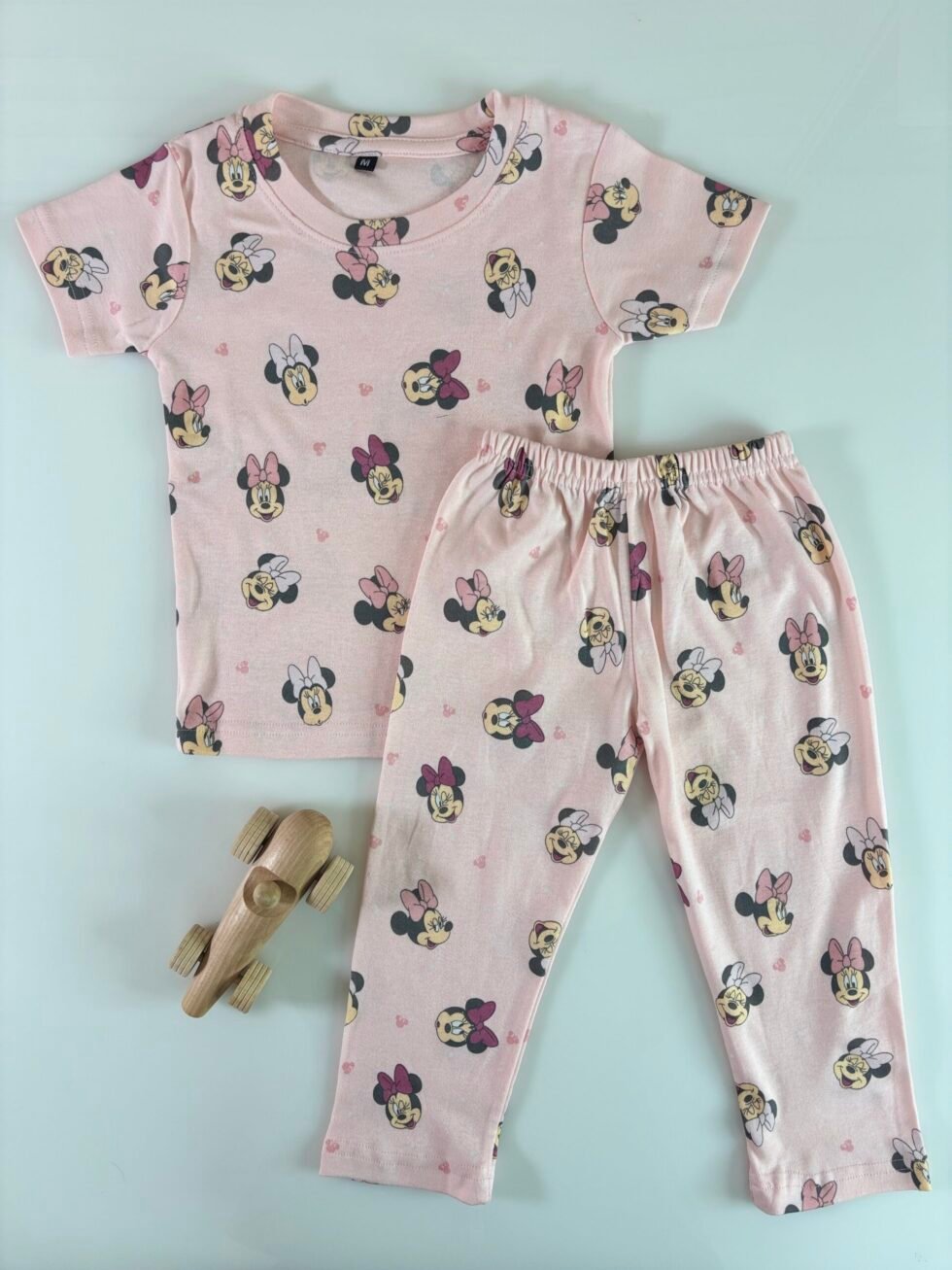 Baby Pink Micky’s Printed Interlock T-Shirt and Pant Co-ords