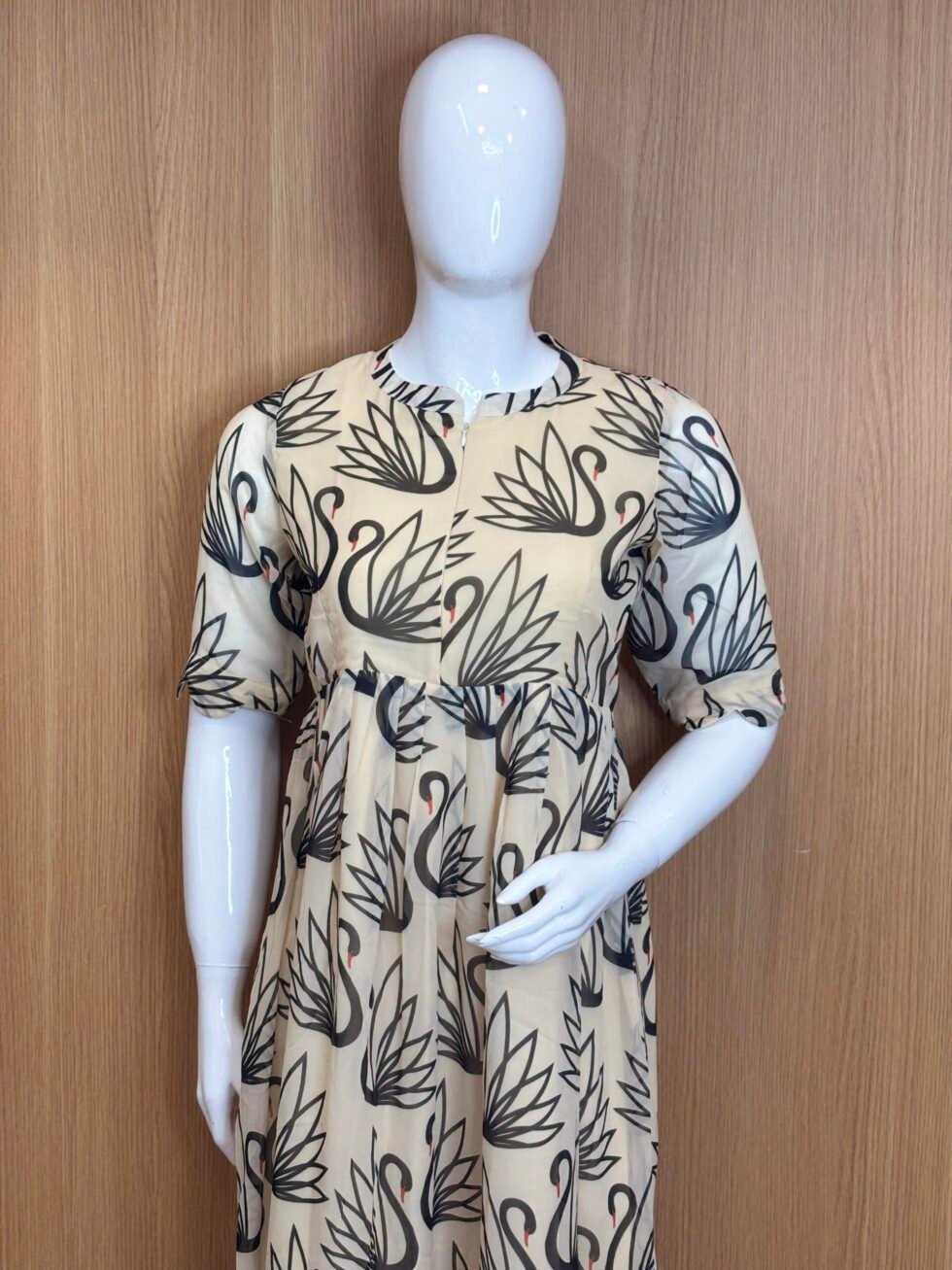 Beige Swan’s Printed Georgette Center Zip Maxi