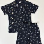 Black Animals Printed Shirt and Shorts Outdoor Wear Set
