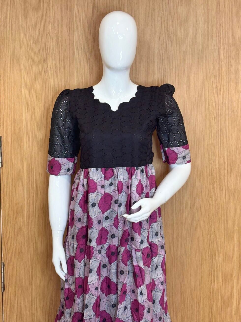Black Purple Floral Printed Hakoba Feeding Maxi