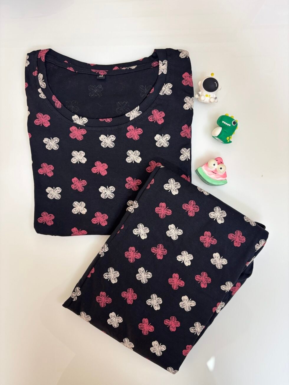Black Small Butterflies Printed T-shirt with Combo Pant Set