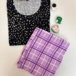 Black Unique Motifs Printed T-shirt with Purple Contrast Pant Set