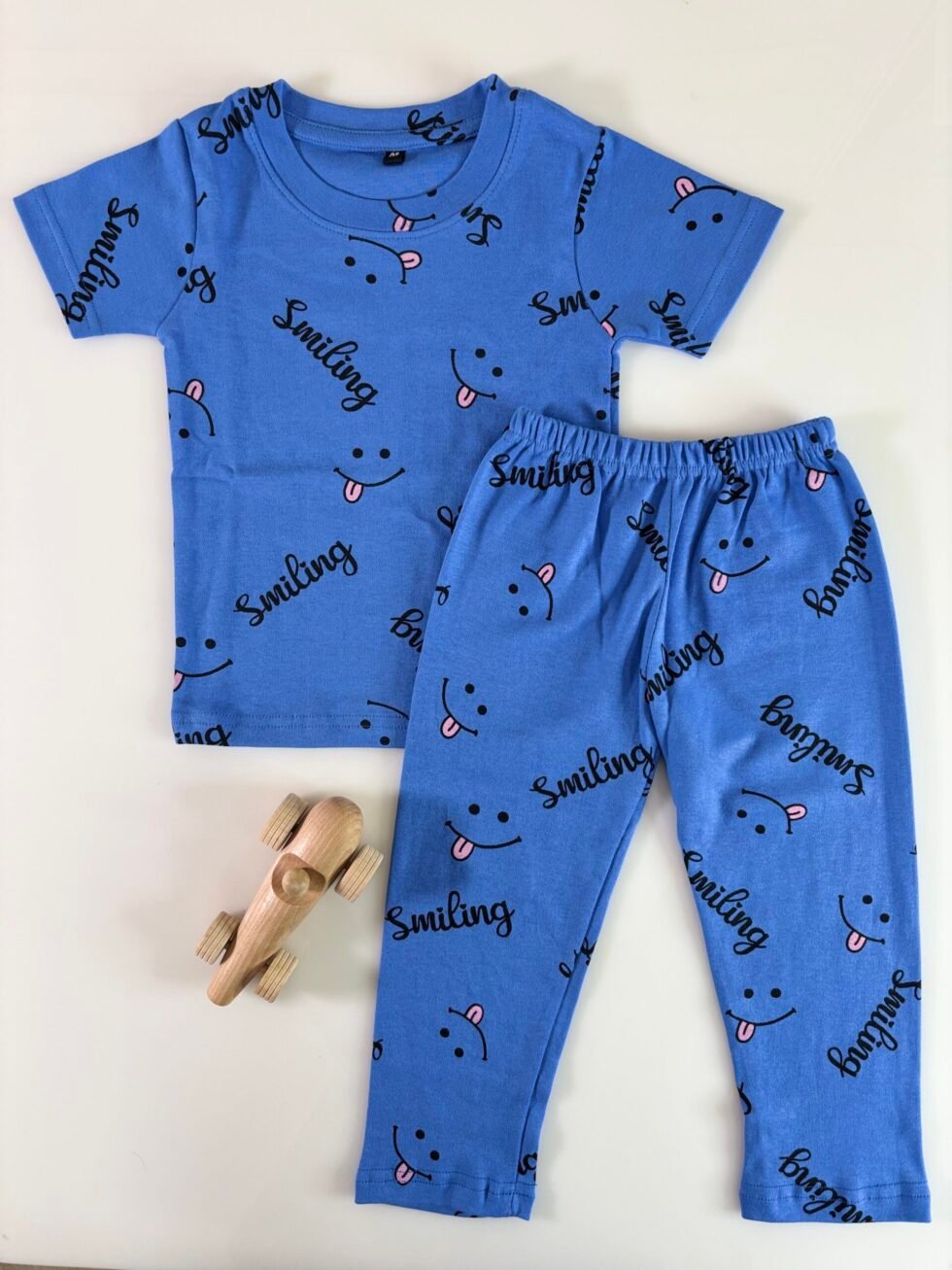 Blue Graphical Printed Interlock T-Shirt and Pant Co-ords