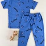 Blue Graphical Printed Interlock T-Shirt and Pant Co-ords