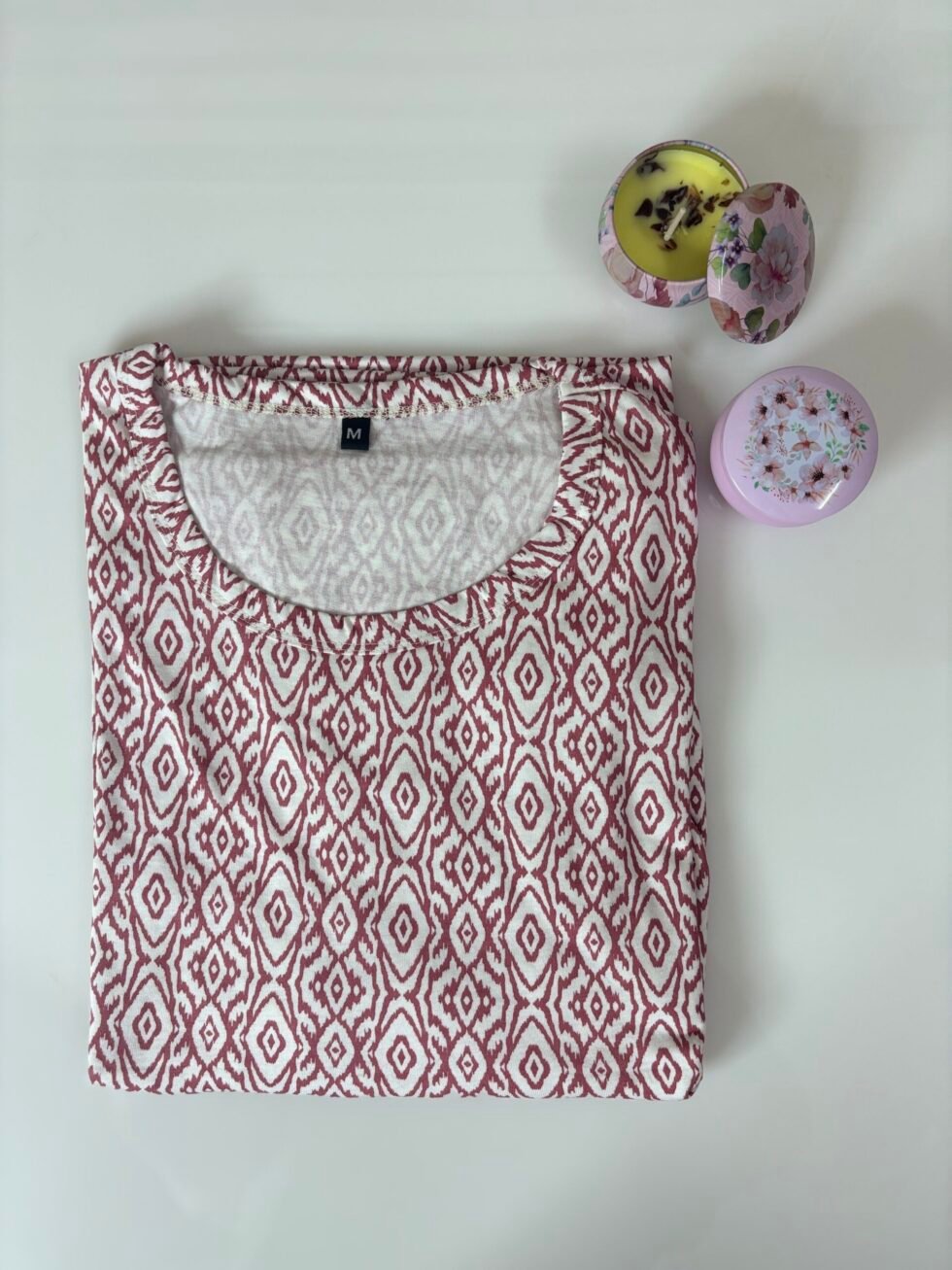 Brown Geometric Printed Round Neck Lounge Frock
