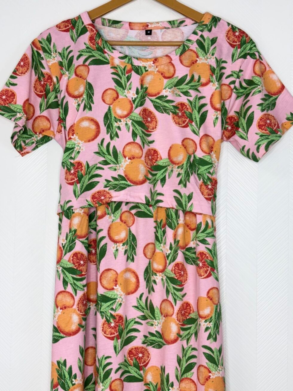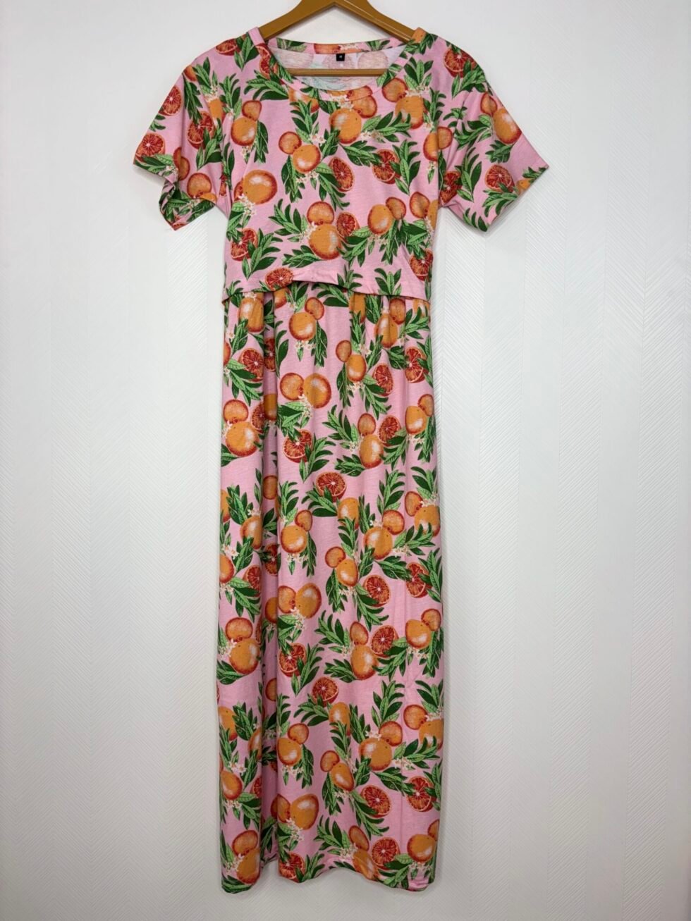 Cotton Fabric Baby Pink Fruity Printed Maternity Maxi