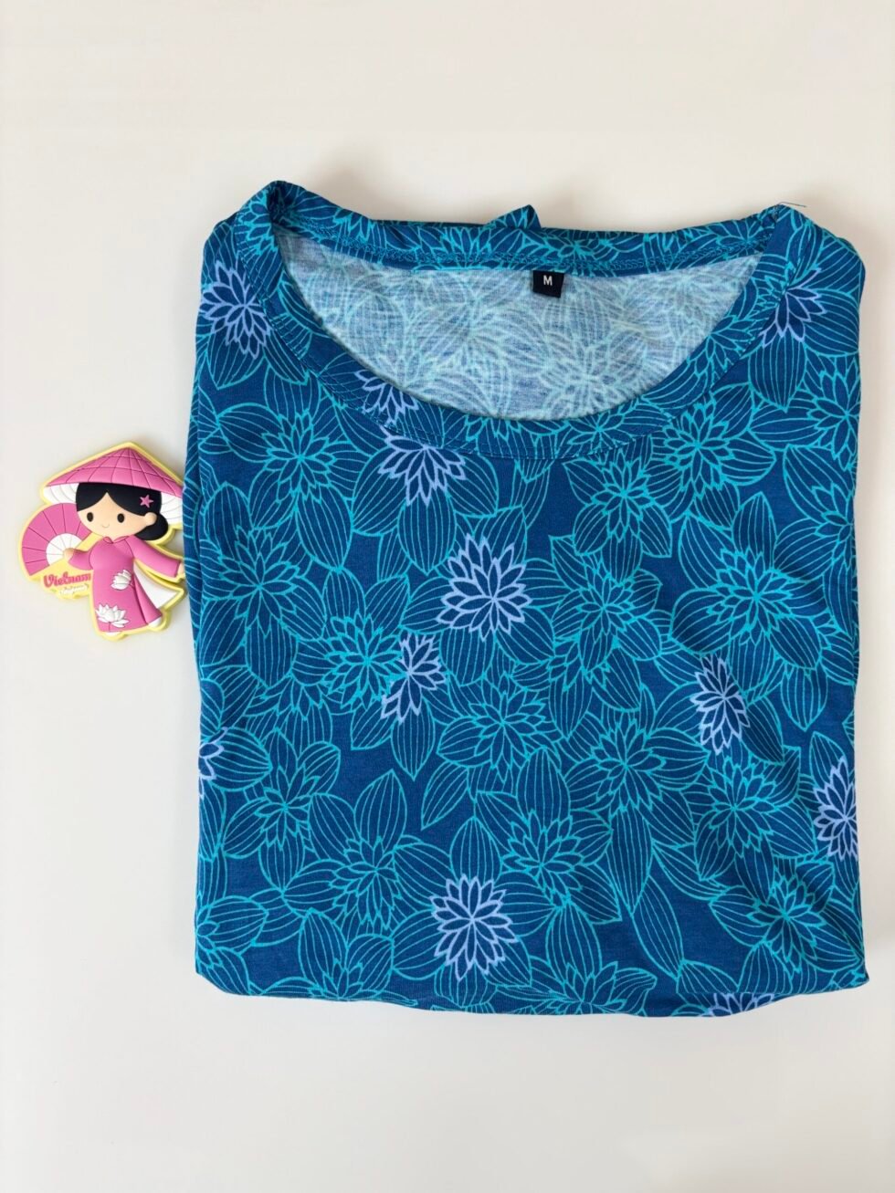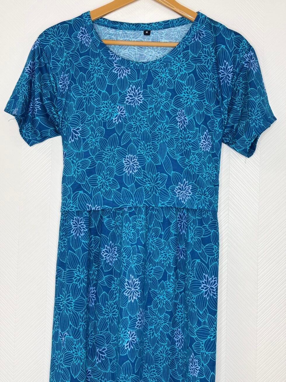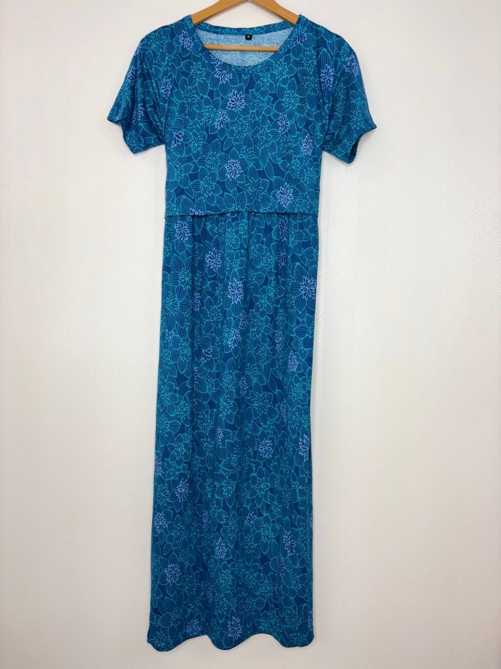 Cotton Fabric Light Blue Floral Shapes Printed Maternity Maxi