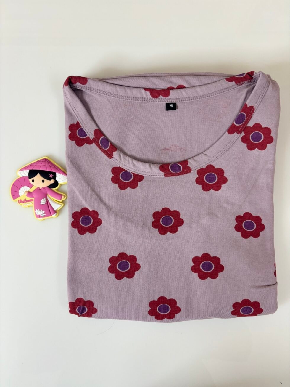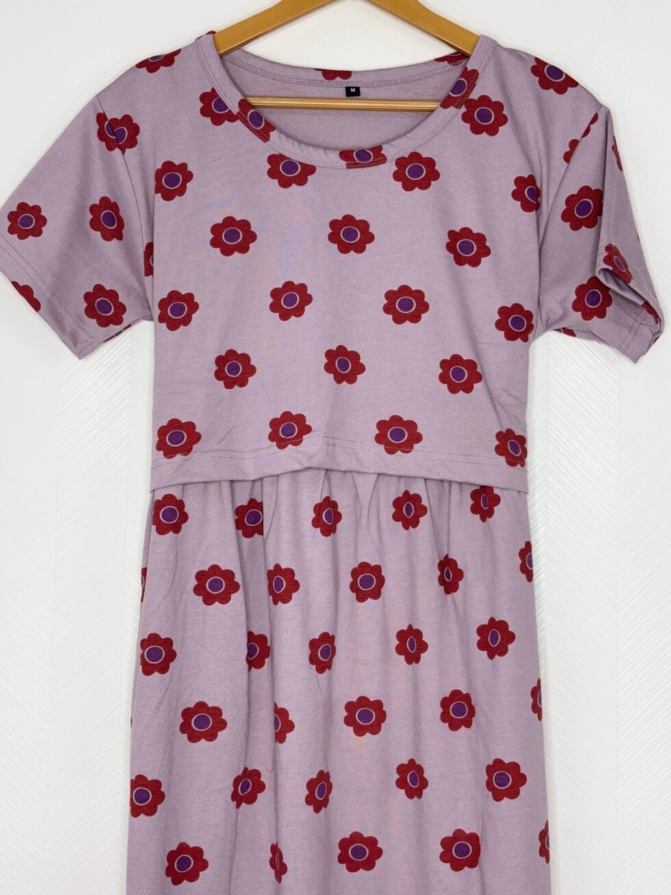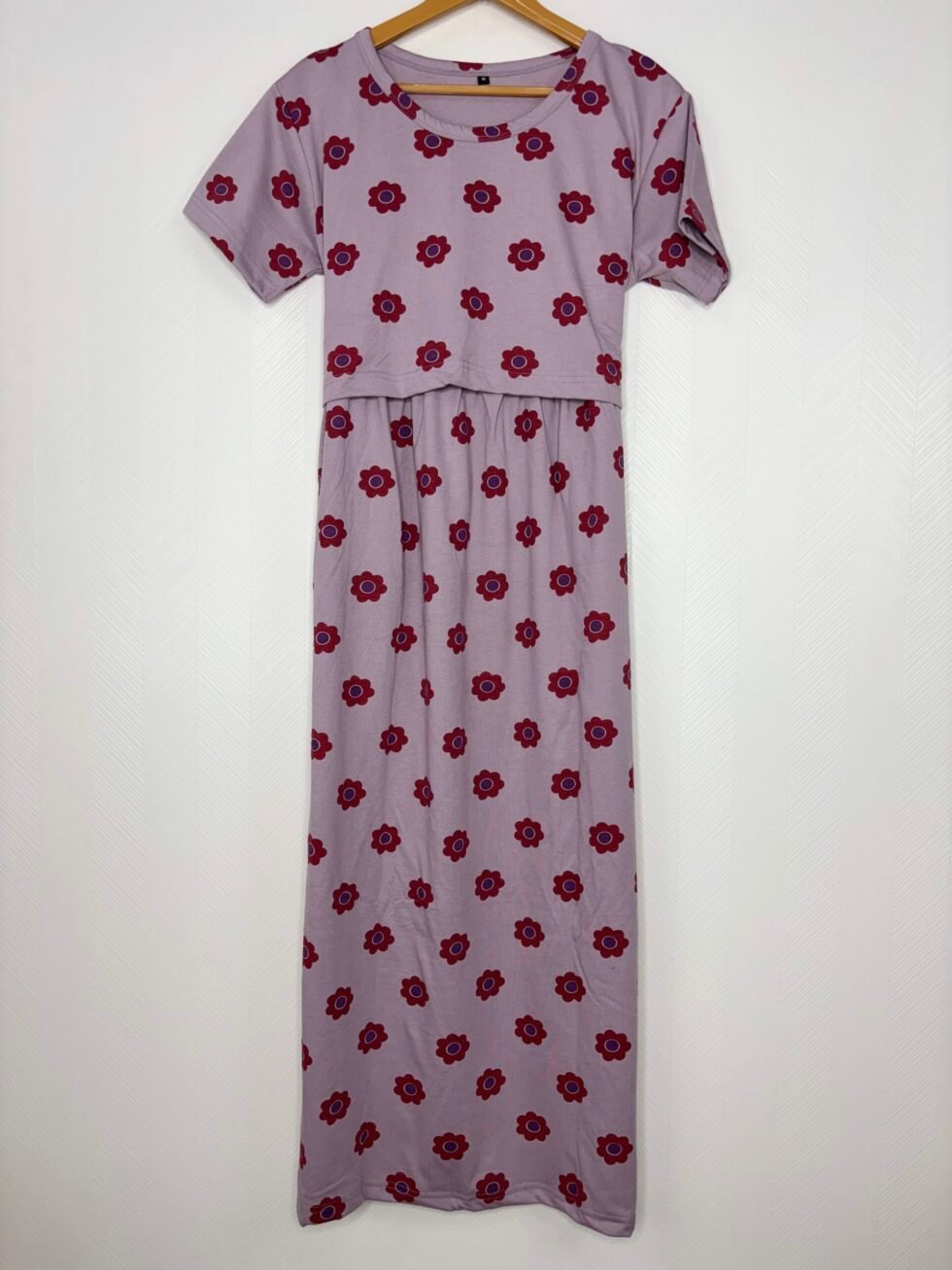 Cotton Fabric Light Purple with Red Floral Printed Maternity Maxi
