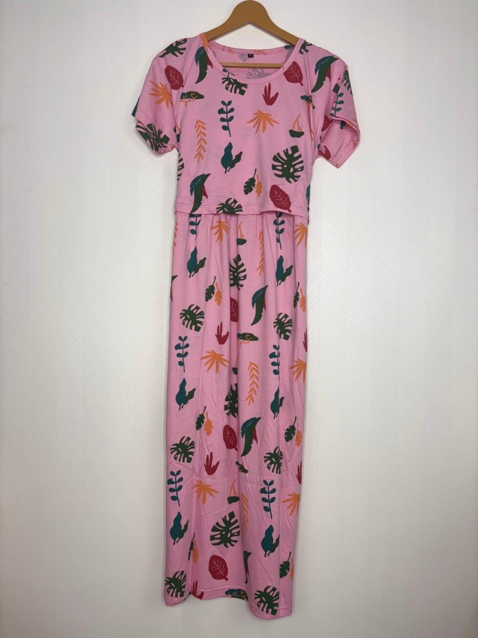 Cotton Fabric Pink Leaves Printed Maternity Maxi
