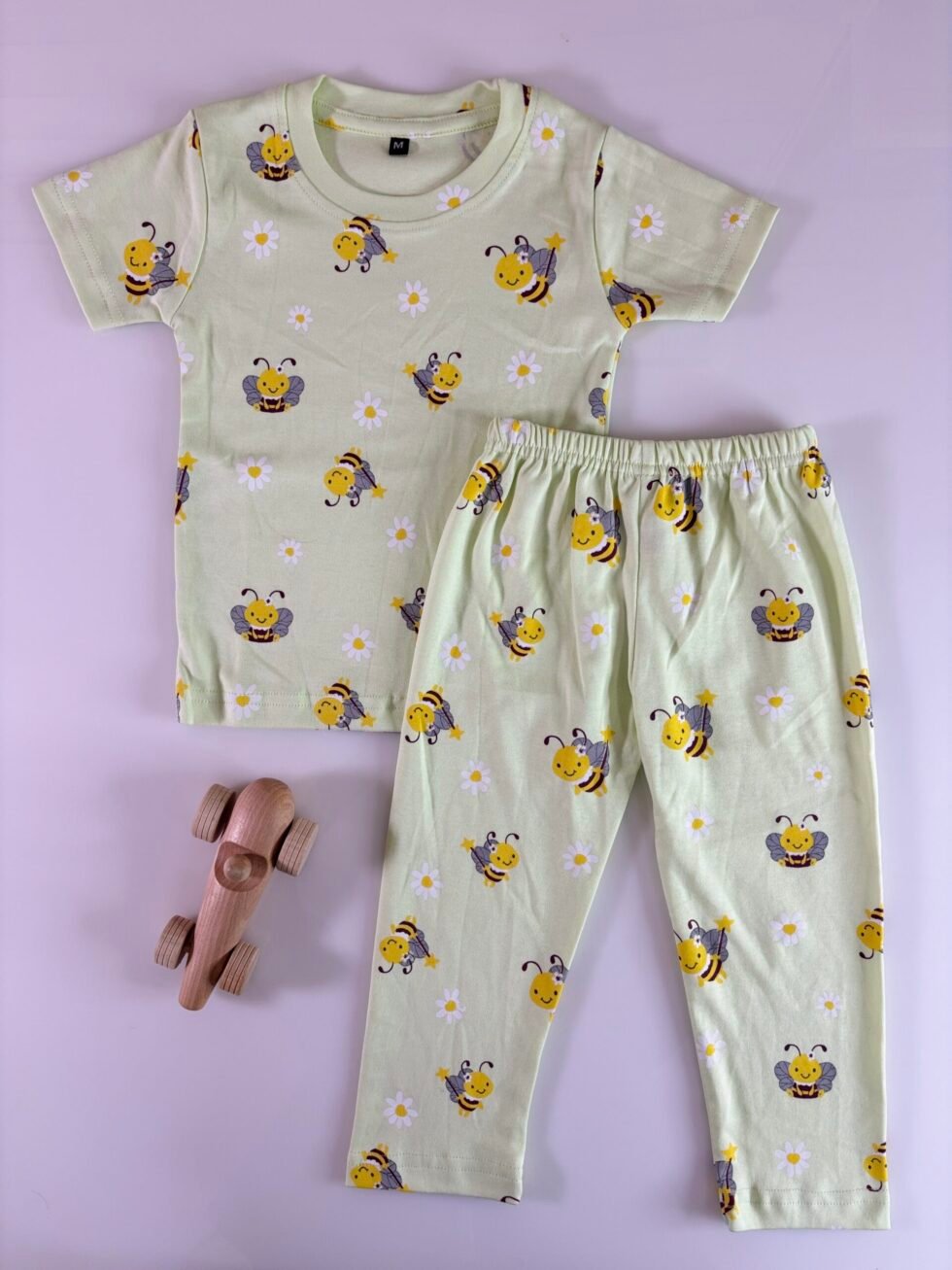 Cream Honey Bee’s Printed Interlock T-Shirt and Pant Co-ords
