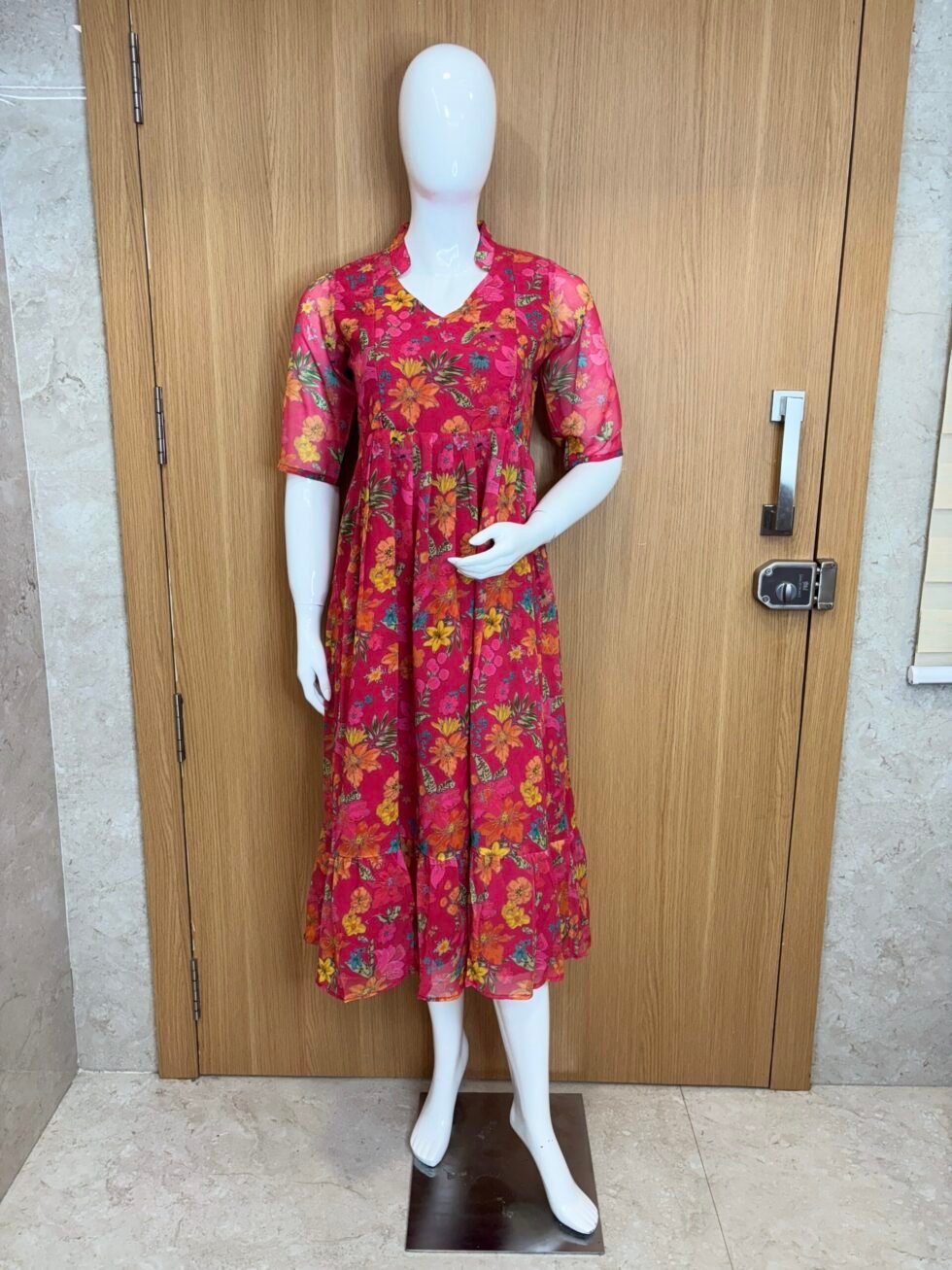 Fuchsia Floral Printed Georgette Outdoor Feeding Maxi