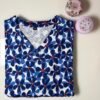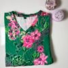 Green and White Leafy Printed Knitted V-Neck Cotton Lounge Frock