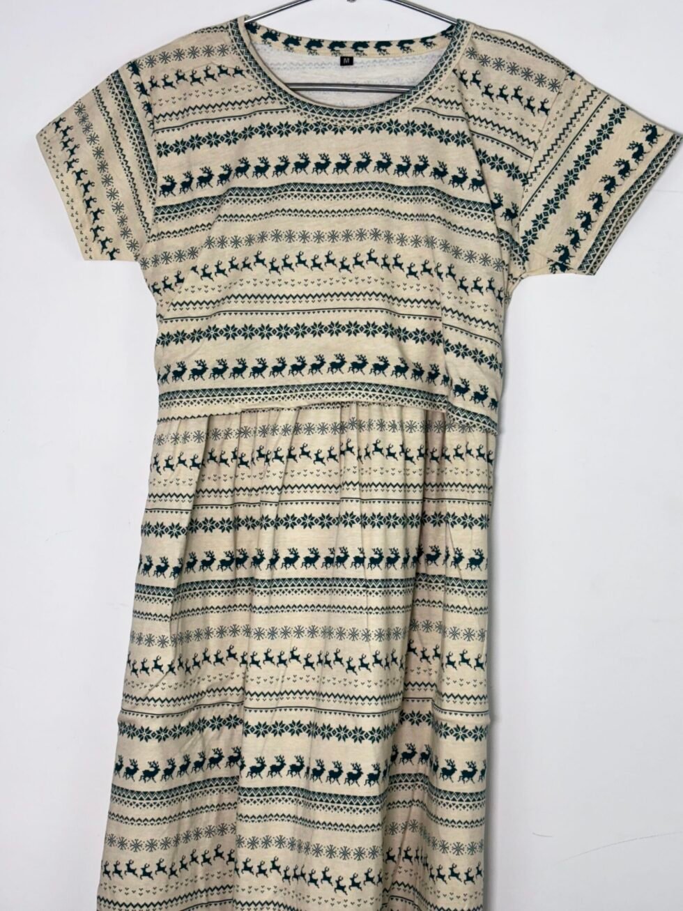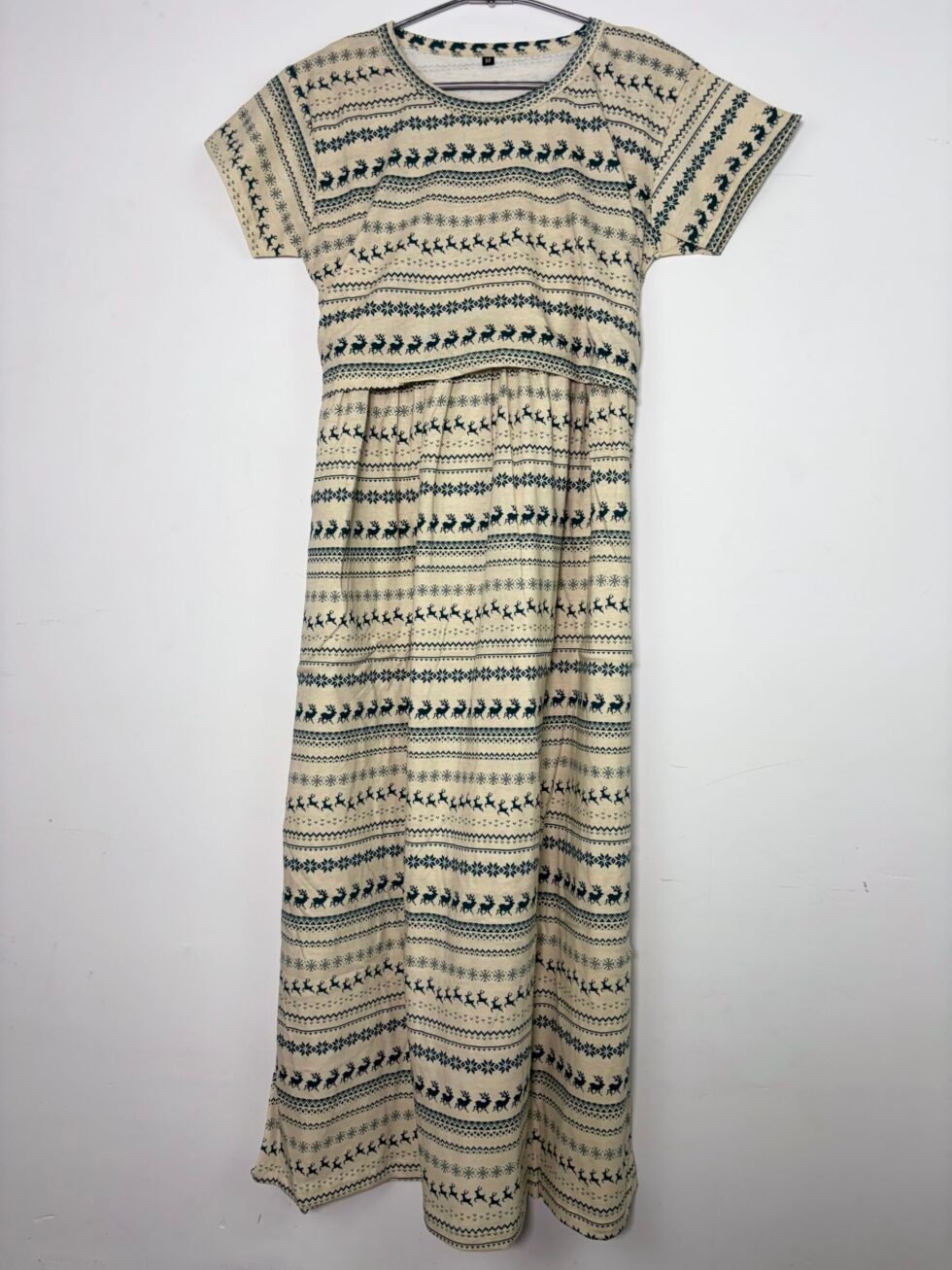 Half White and Snowflake Motifs Printed Short Sleeve Feeding Maxi