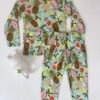 Light Blue and Beige Animals Printed Interlock Full-Sleeve T-Shirt and Pant Co-ords