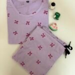 Light Lavender Bow’s Printed T-shirt with Combo Pant Set