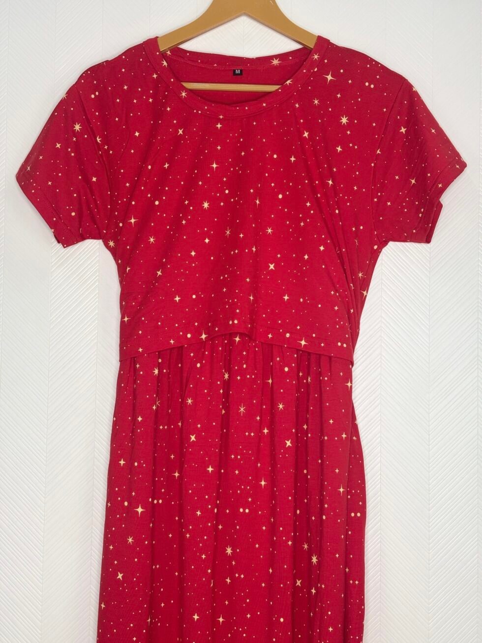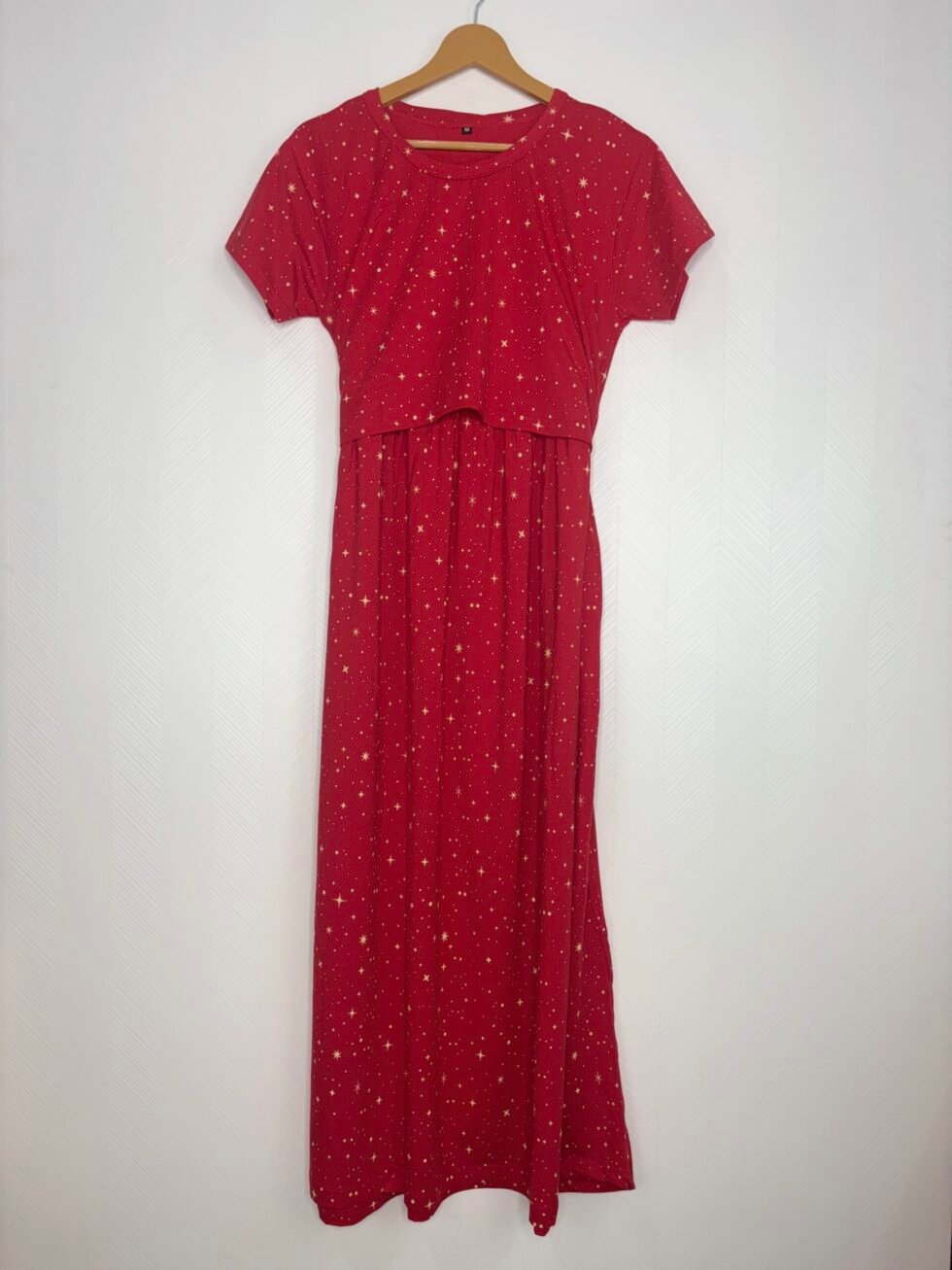 Modal Fabric Red Yellow Glitter Printed Maternity Maxi