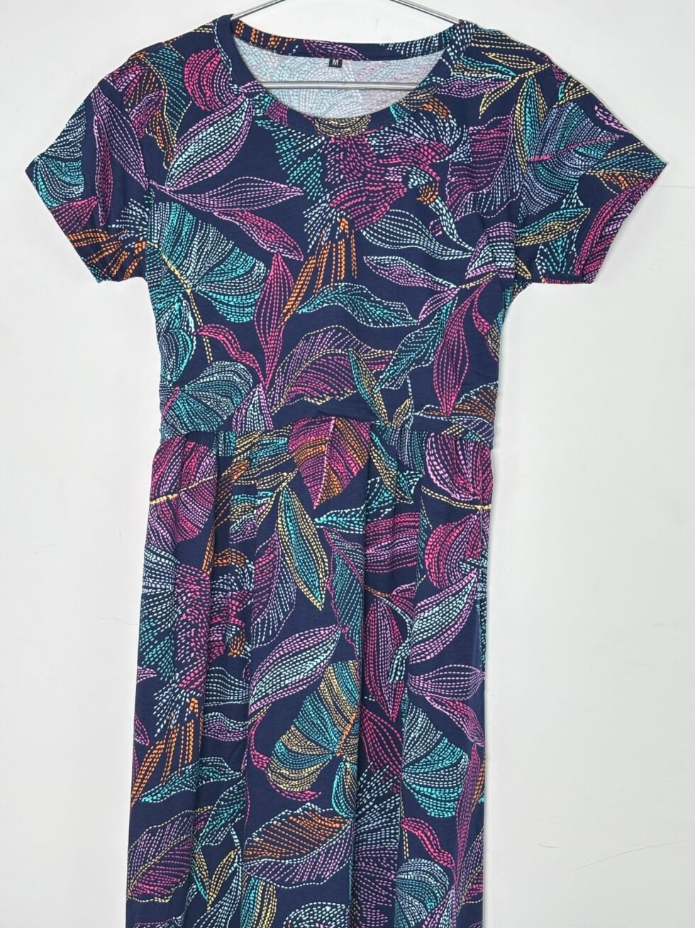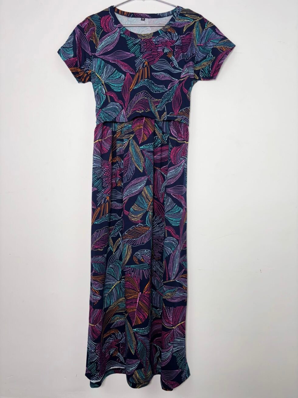 Navy and Digital Printed Short Sleeve Feeding Maxi