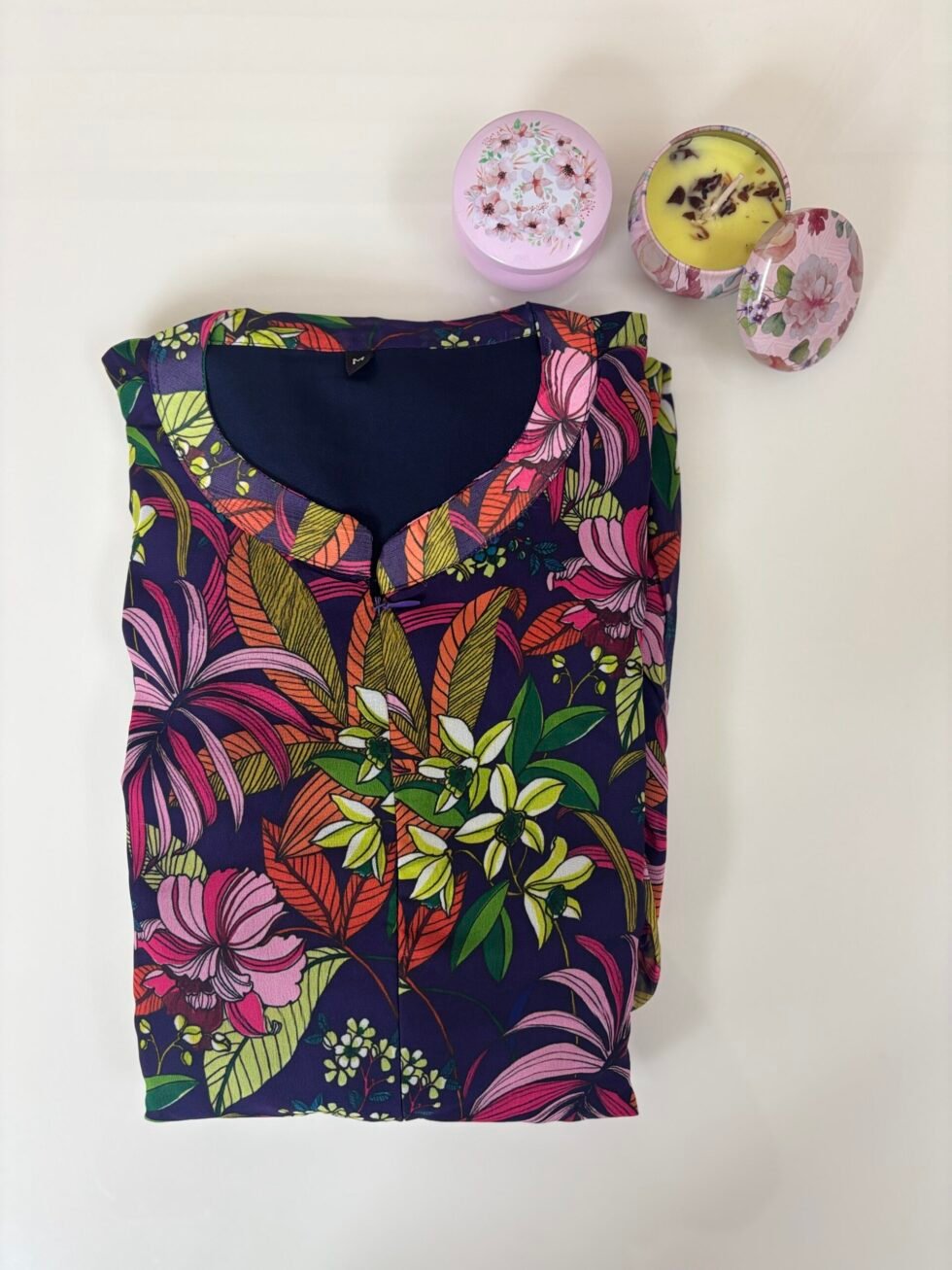 Navy Blue Floral With Leafy Printed Georgette Center Zip Maxi