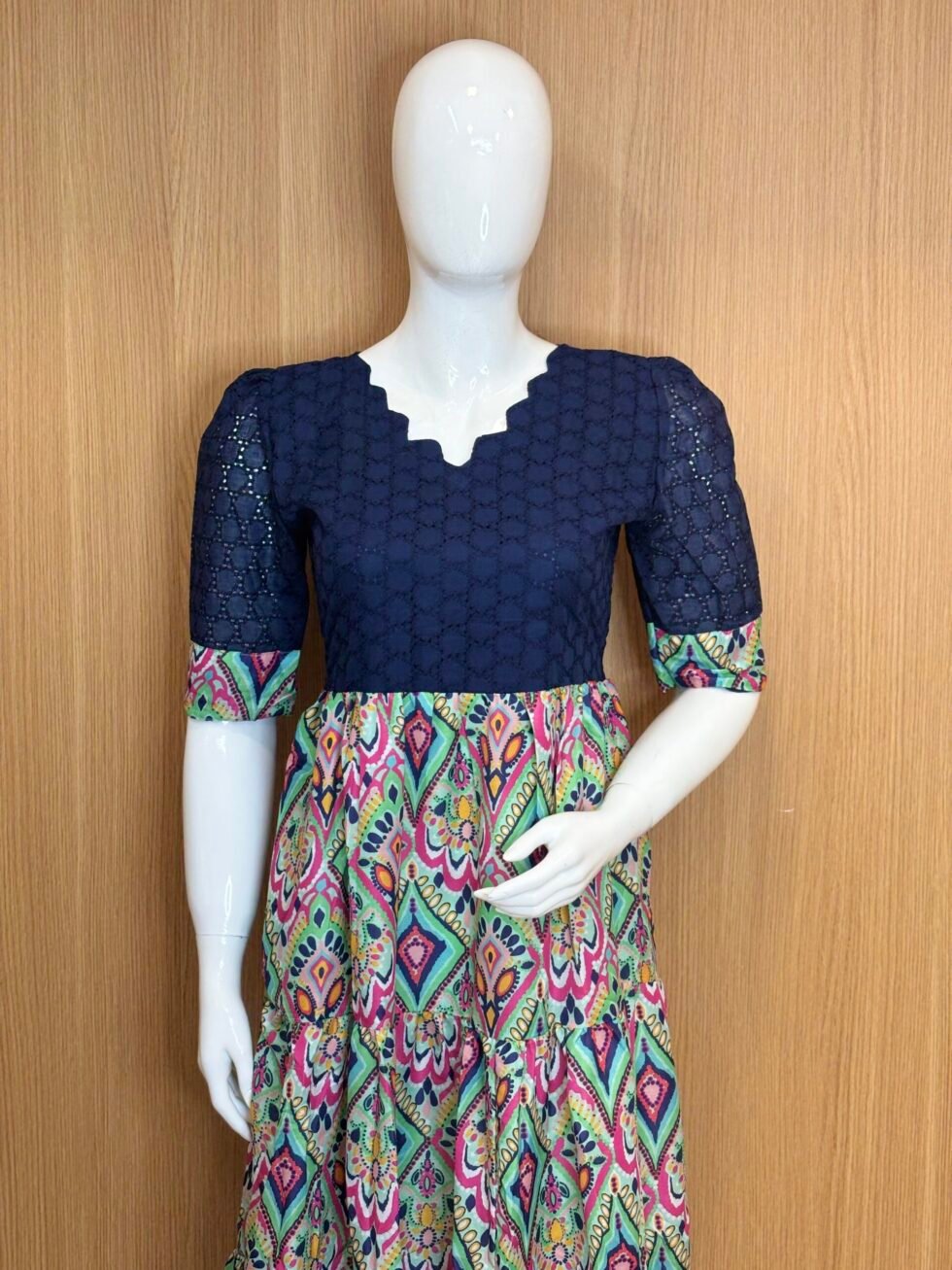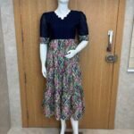 Navy Blue Green Pattern Printed Hakoba Non Feeding Maxi