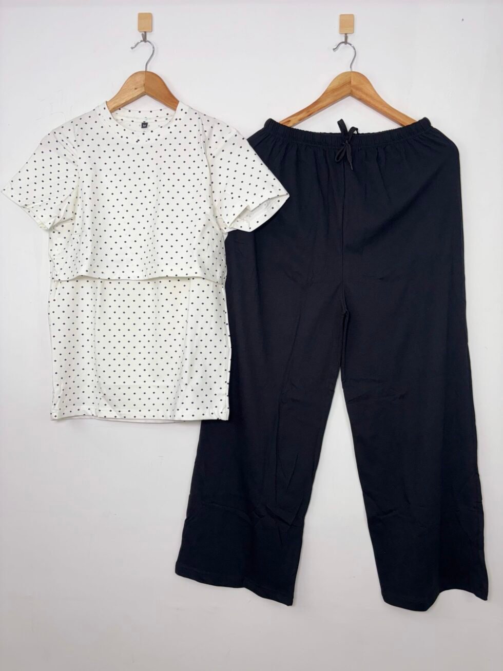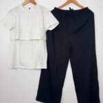White Black Dotted Feeding Top and Black Plain Palazzo Set