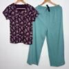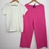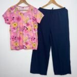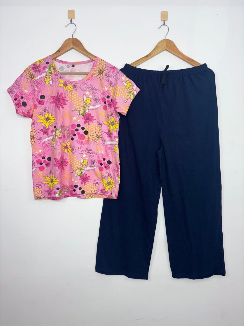 Pink Floral Printed T-shirt and Solid Blue Palazzo Pant Set