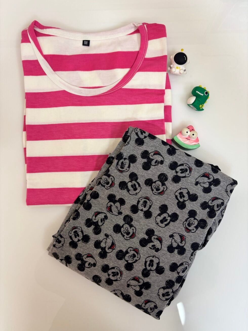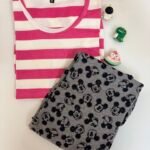 Pink Stripes Printed T-shirt with Grey Contrast Pant Set