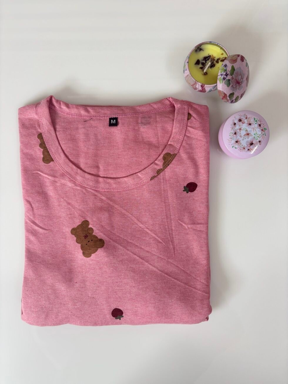 Pink Teddy’s Printed Round Neck Lounge Frock