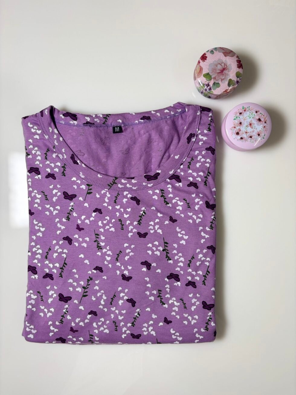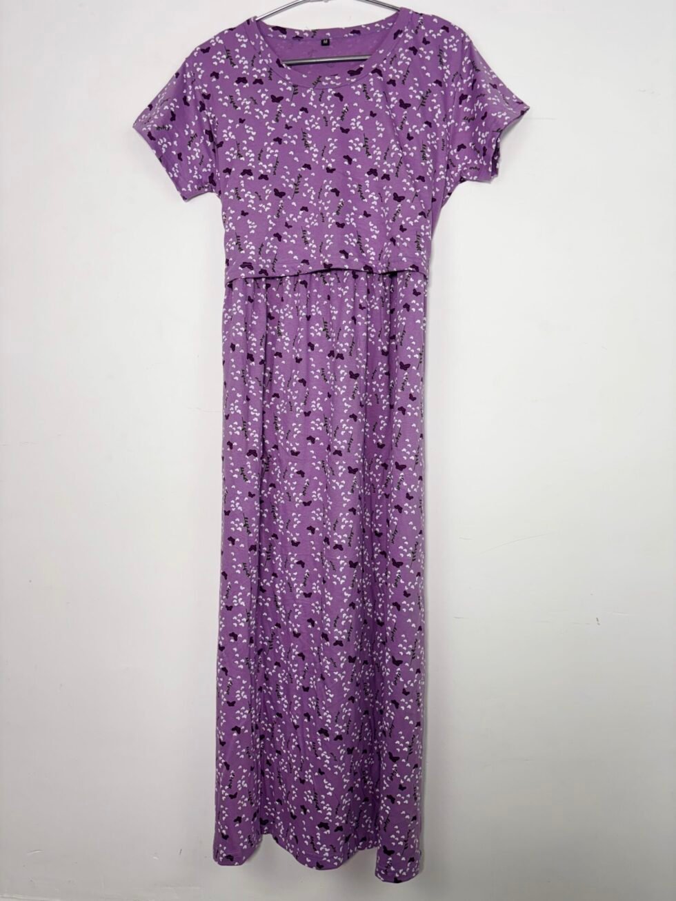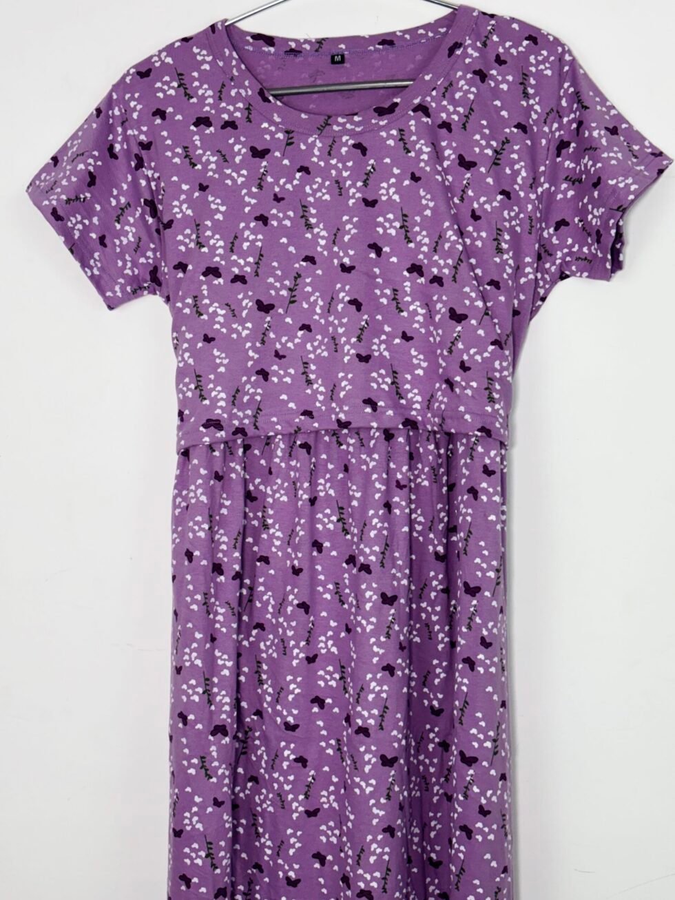 Purple and Butterflies Printed Short Sleeve Feeding Maxi