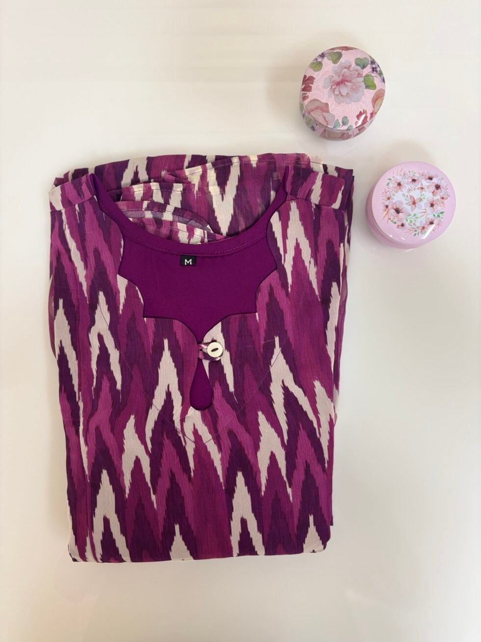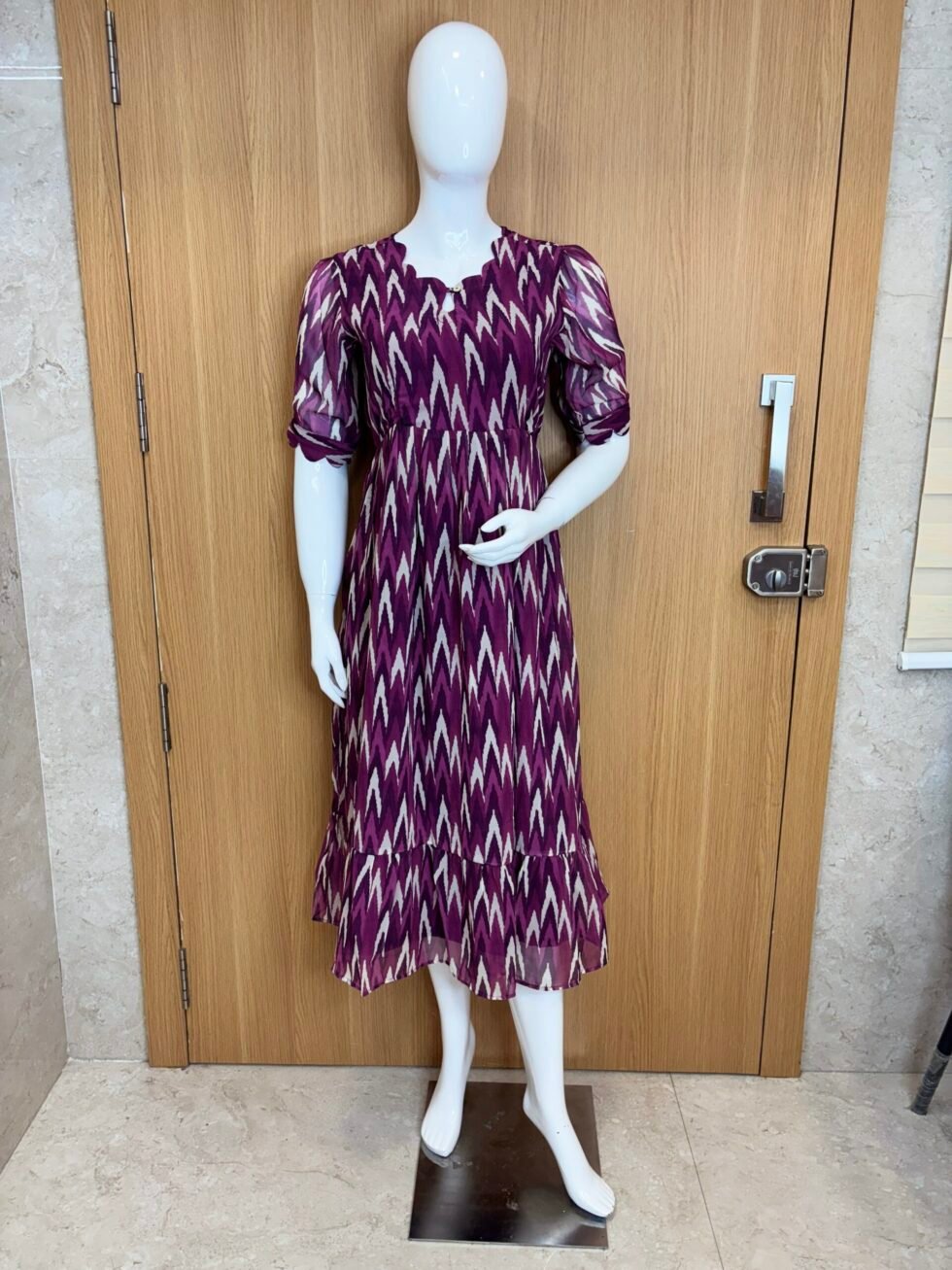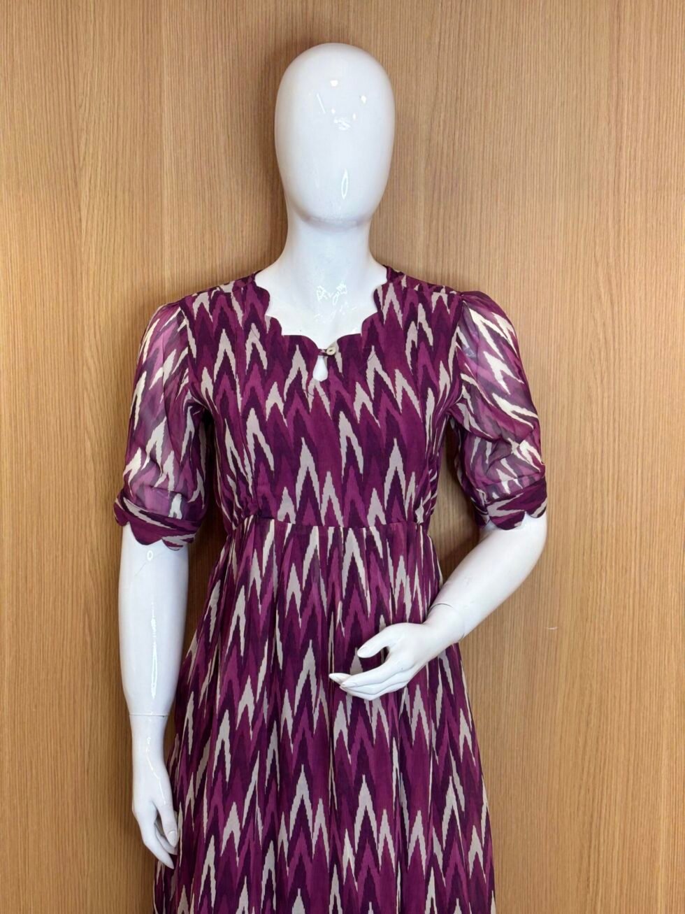 Purple Ikat Pattern Printed Georgette Outdoor Feeding Maxi