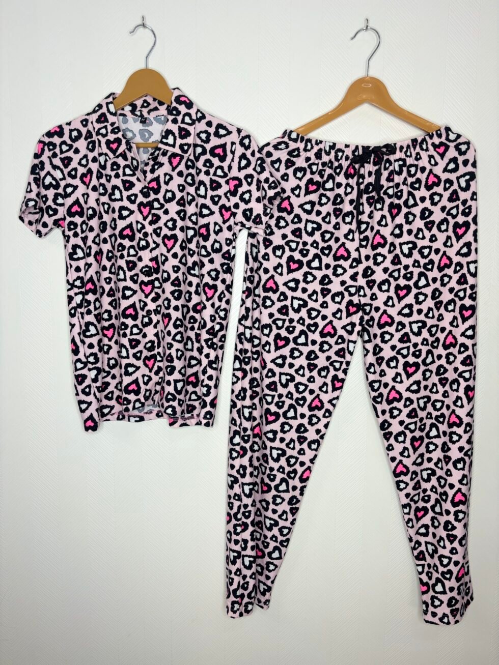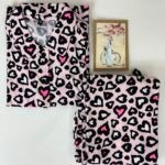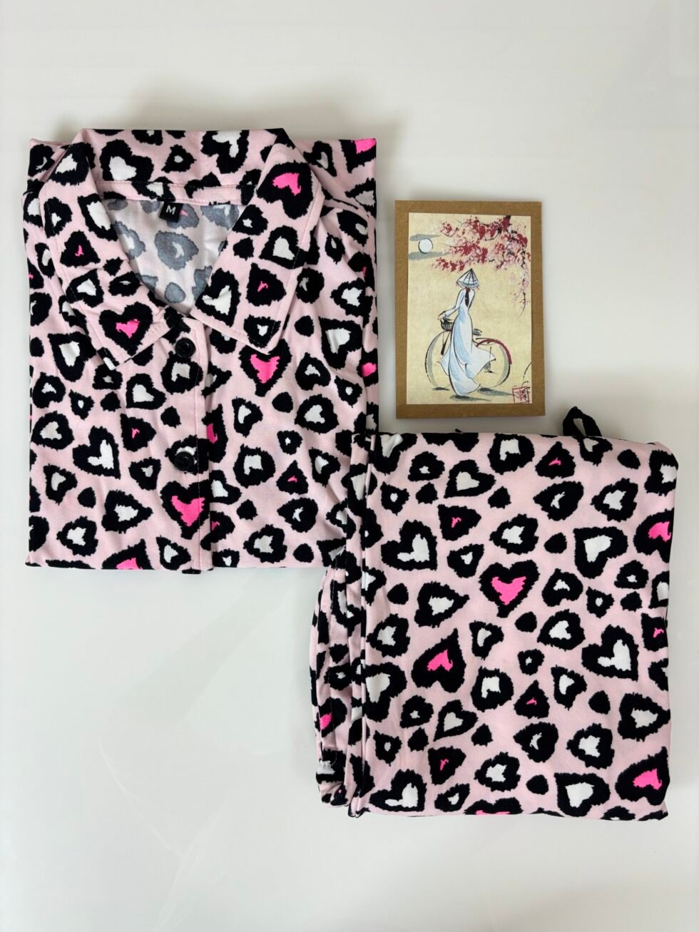 Spun Fabric Beige with Leopard Hearts Printed Shirt and Pant Coords