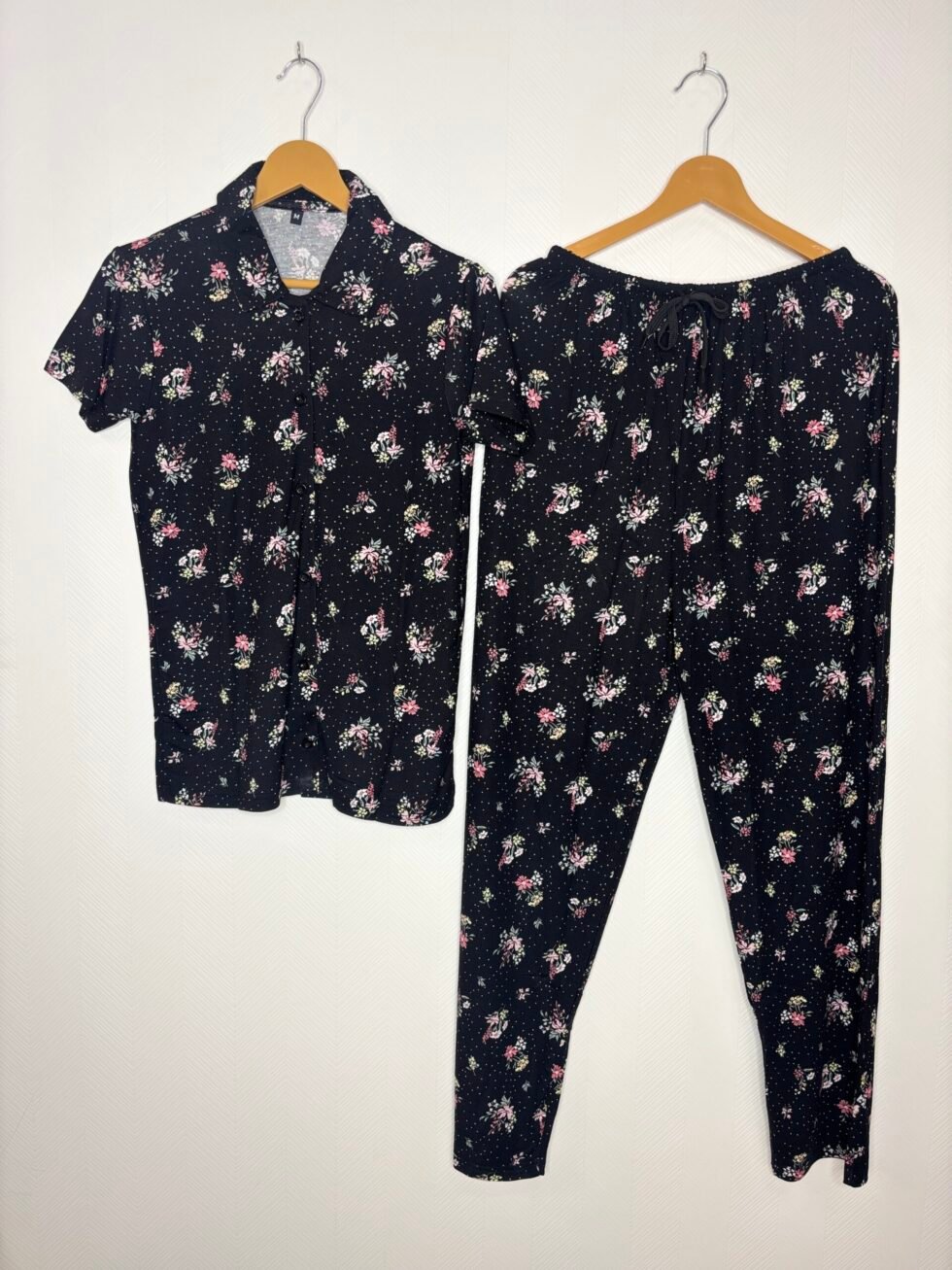 Spun Fabric Black with Pink Floral Printed Shirt and Pant Coords
