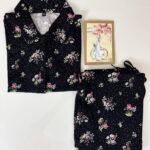 Spun Fabric Black with Pink Floral Printed Shirt and Pant Coords