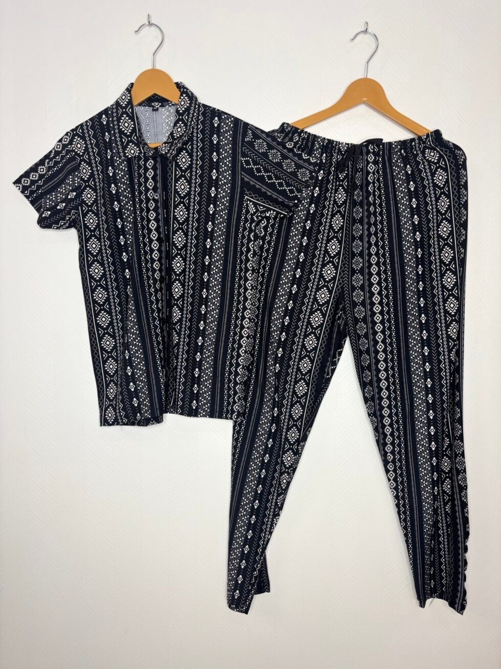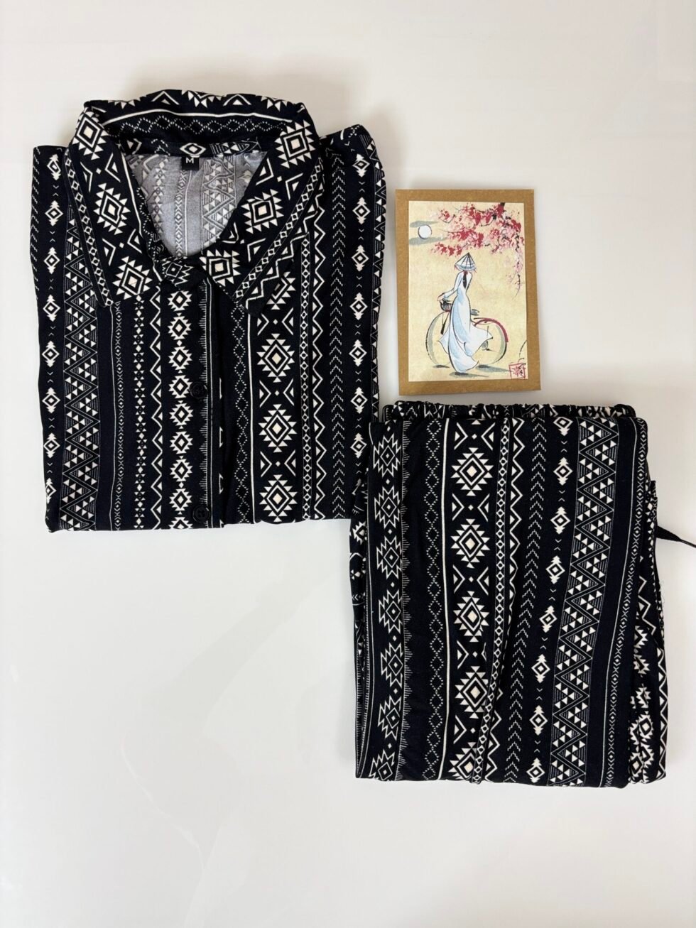 Spun Fabric Black with White Tribal Printed Shirt and Pant Coords