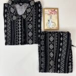 Spun Fabric Black with White Tribal Printed Shirt and Pant Coords