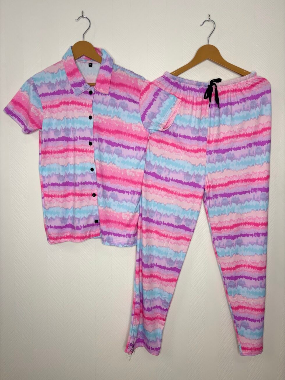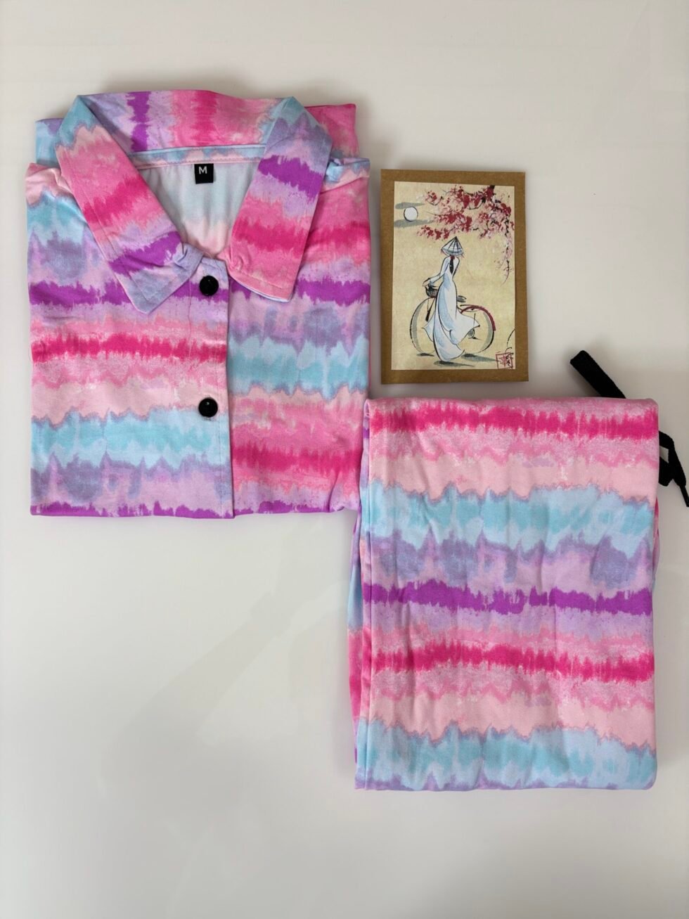 Spun Fabric Multicolor Tie-Dye Abstract Printed Shirt and Pant Coords