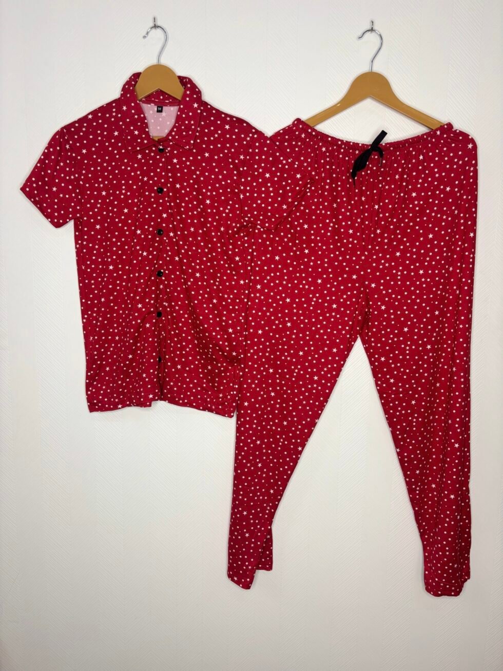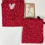 Spun Fabric Red with White Polko Dot’s Printed Shirt and Pant Coords