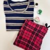 White and Black Bow’s Printed T-shirt with Garment Red Contrast Pant Set