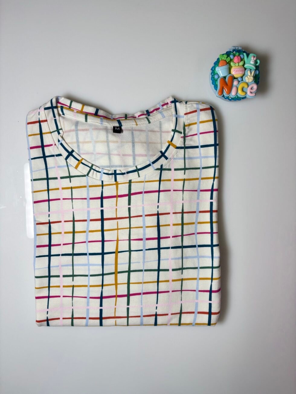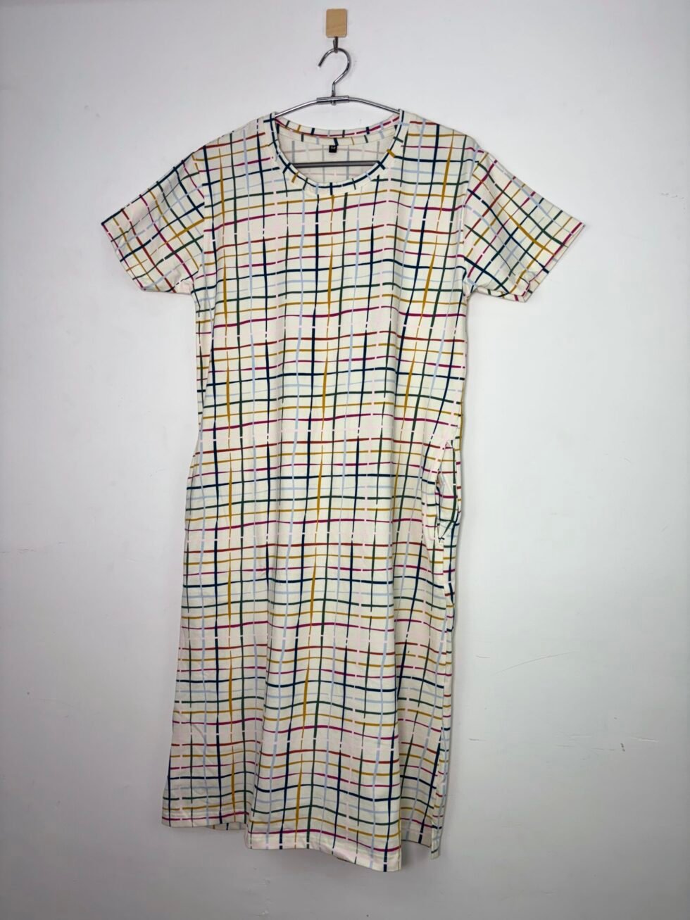 White and Multicolor Stripes Printed Round Neck Long Tunic