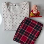 White and Red Hearts Printed T-shirt with Red Contrast Pant Set