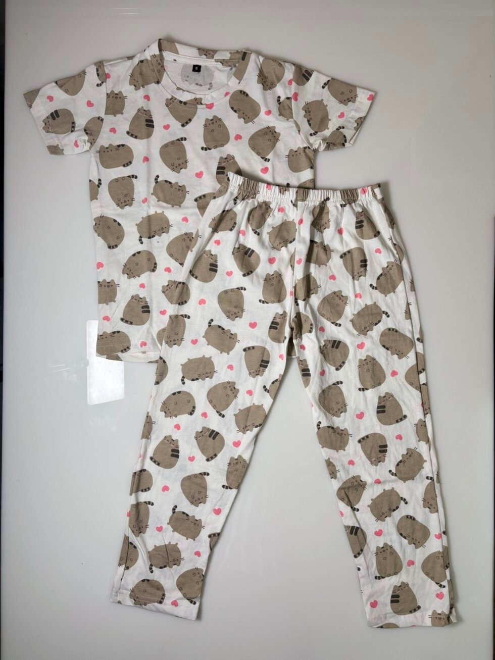 White Brown Catty Printed T-Shirt and Pant Co-ords