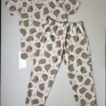 White Brown Catty Printed T-Shirt and Pant Co-ords