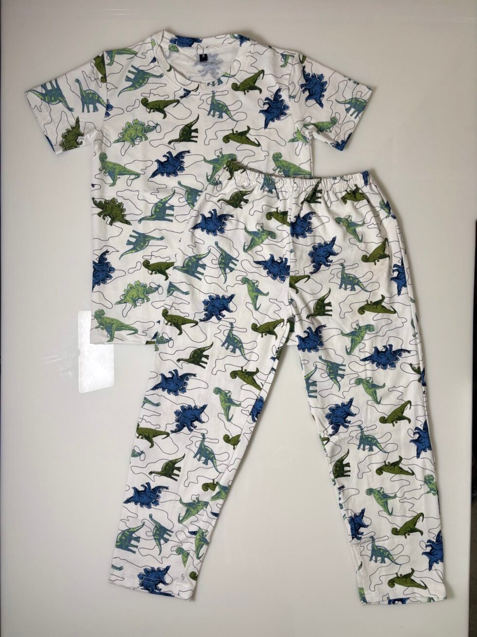 White Coloured Dinosaur Printed T-Shirt and Pant Co-ords