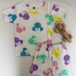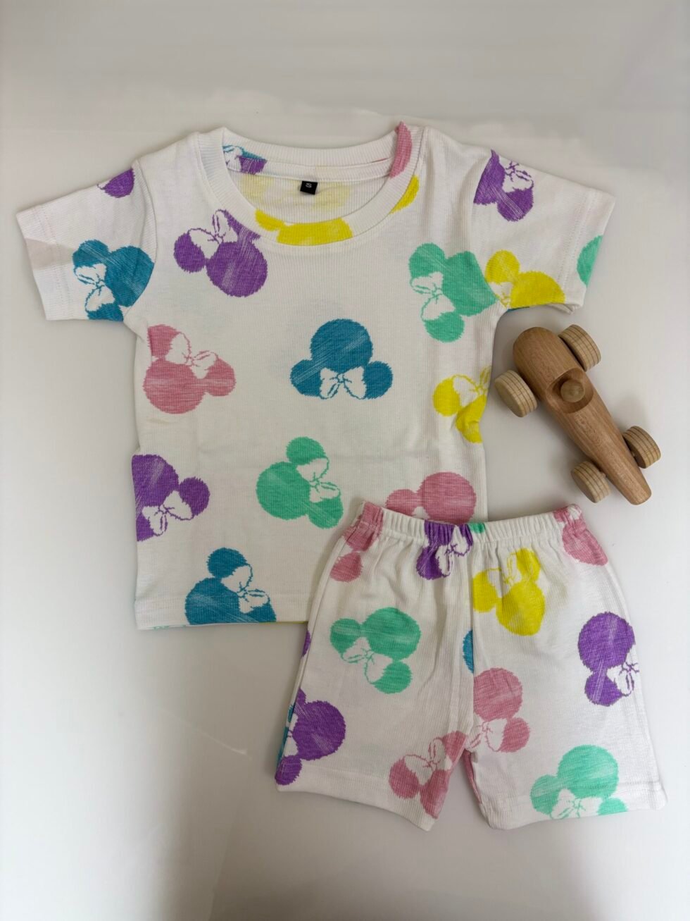 White Coloured Ribbon Printed Kids T-shirt and shorts Coords