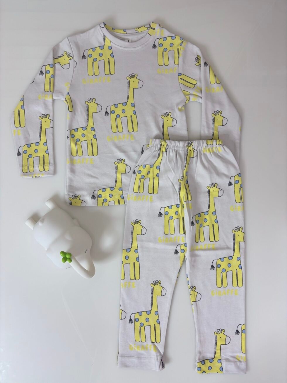 White Giraffe Printed Interlock Full-Sleeve T-Shirt and Pant Co-ords