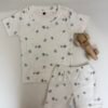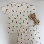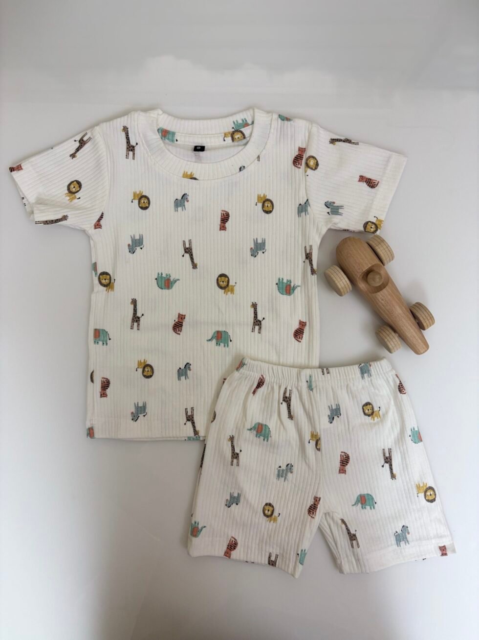 White Ribbed Giraffe Lion Printed Kids T-shirt and shorts Coords