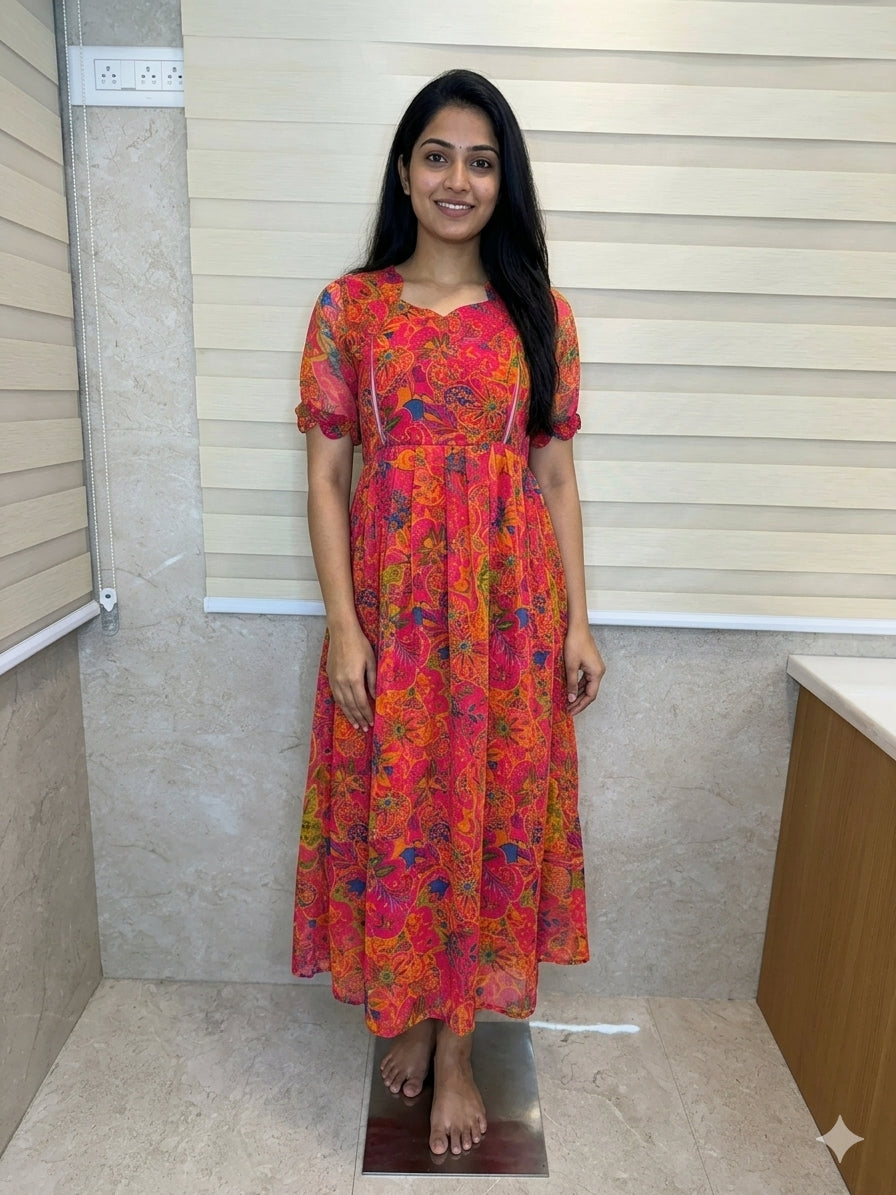 Pink Orange Multicolor Floral Printed Georgette Feeding Maxi